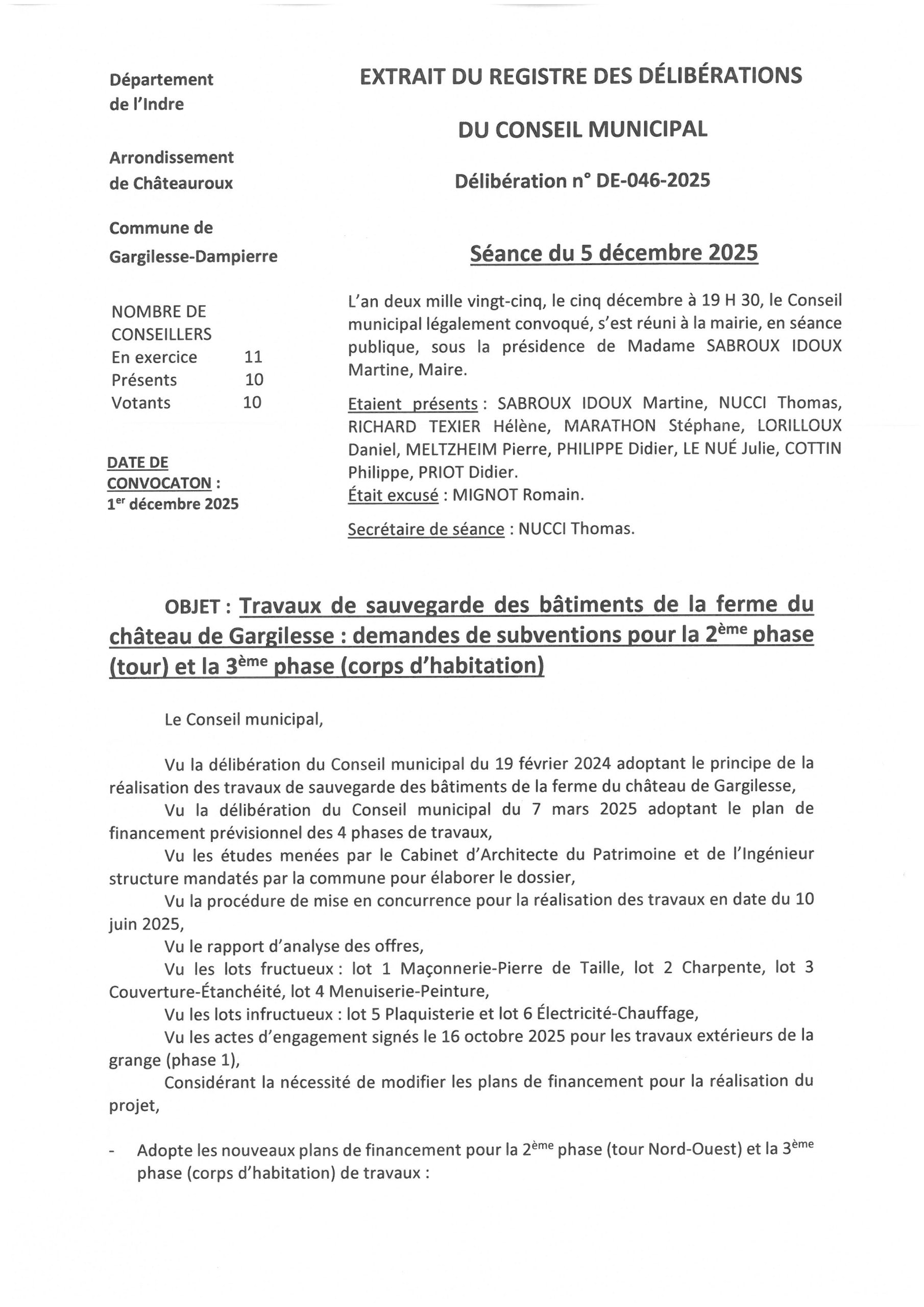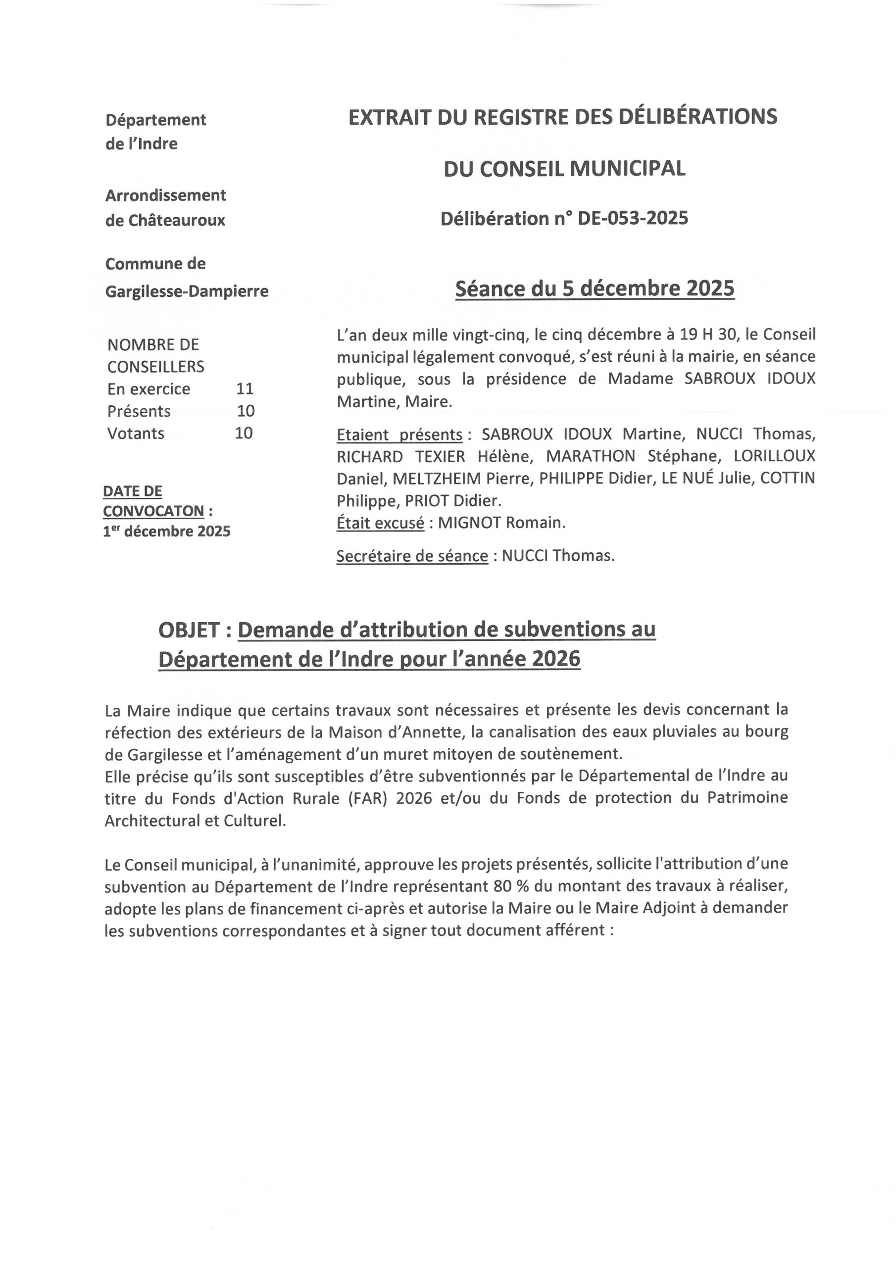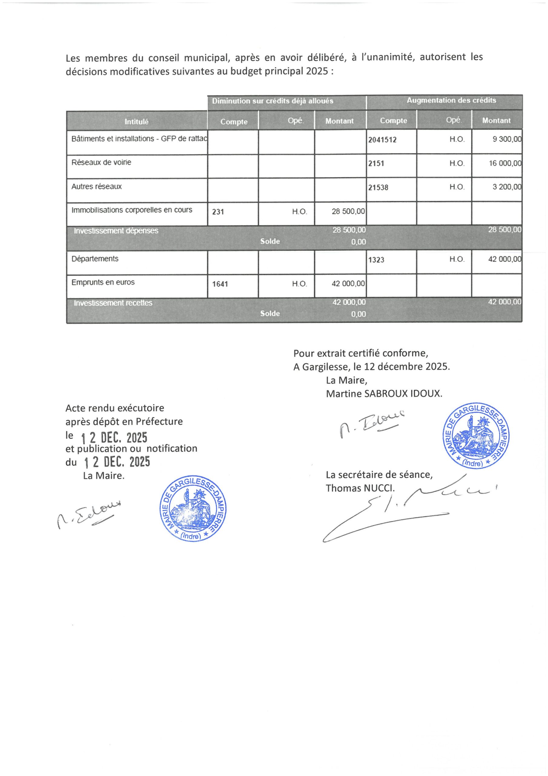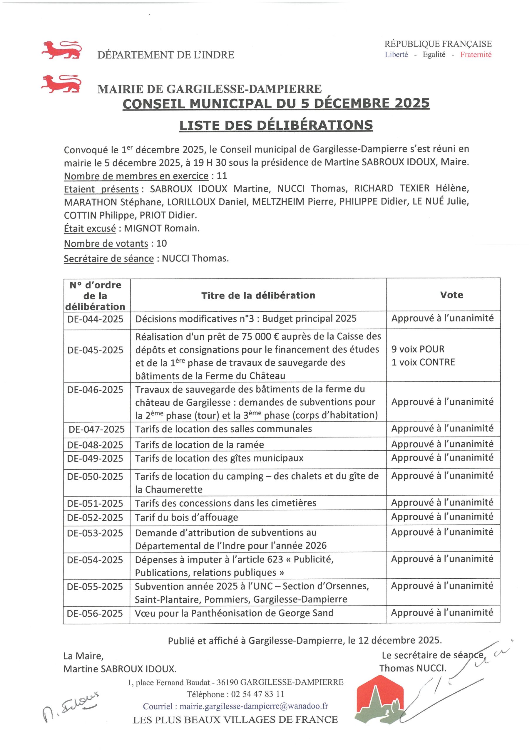 Délibérations du 5 décembre 2025