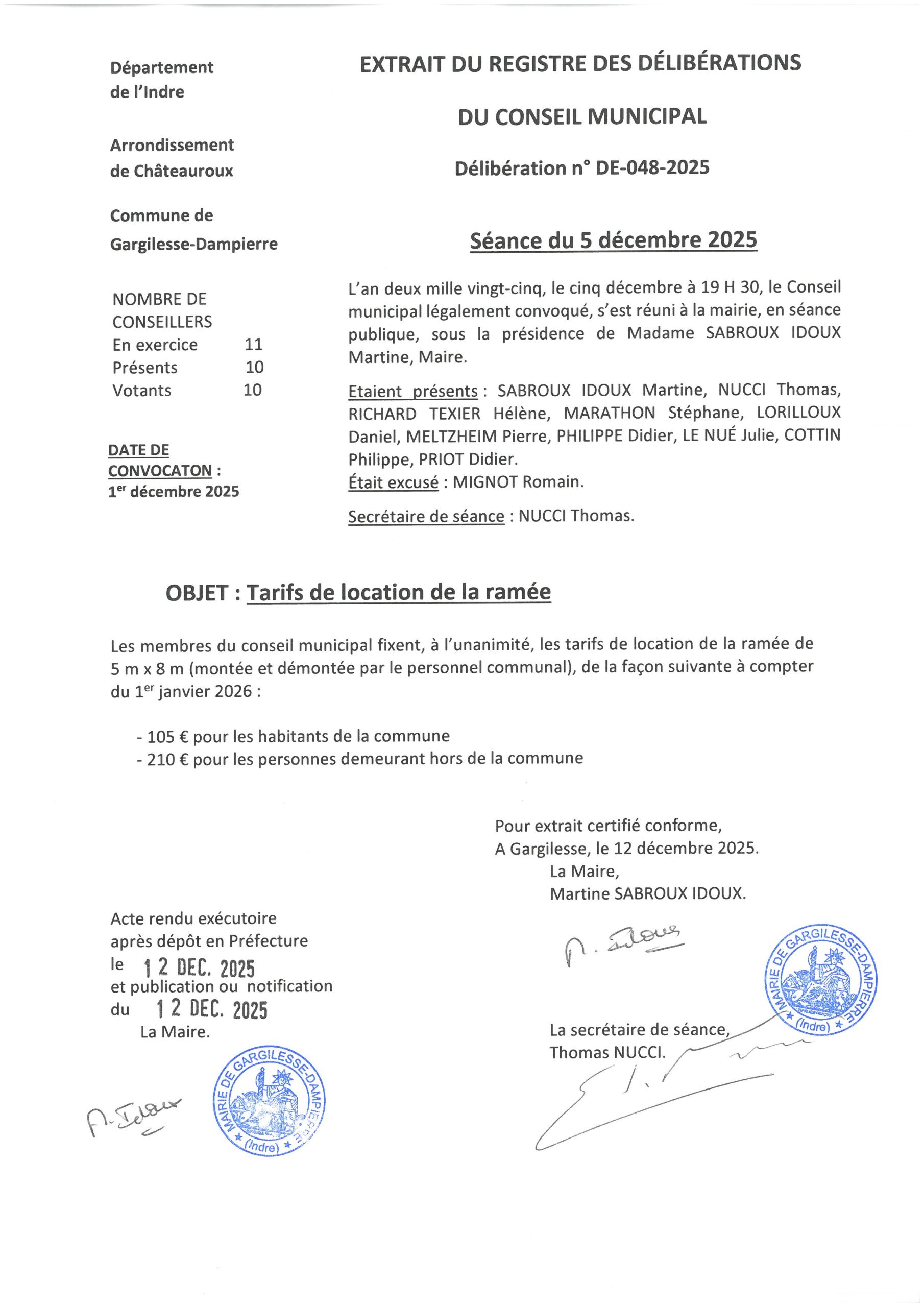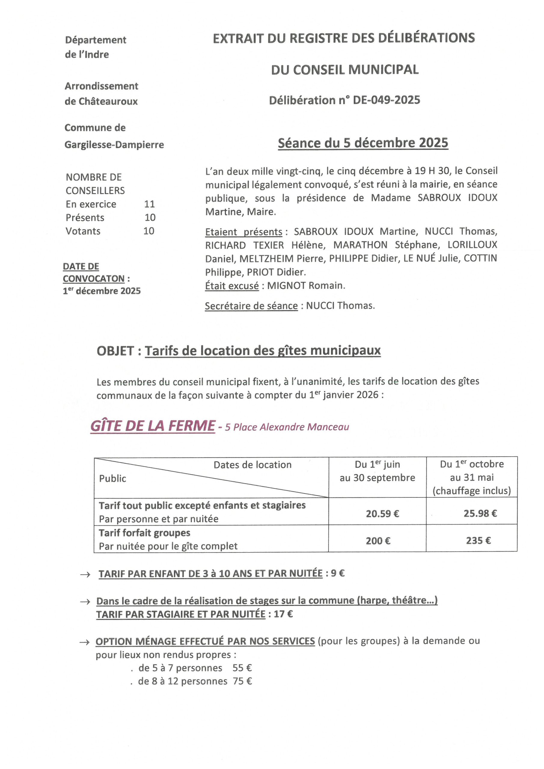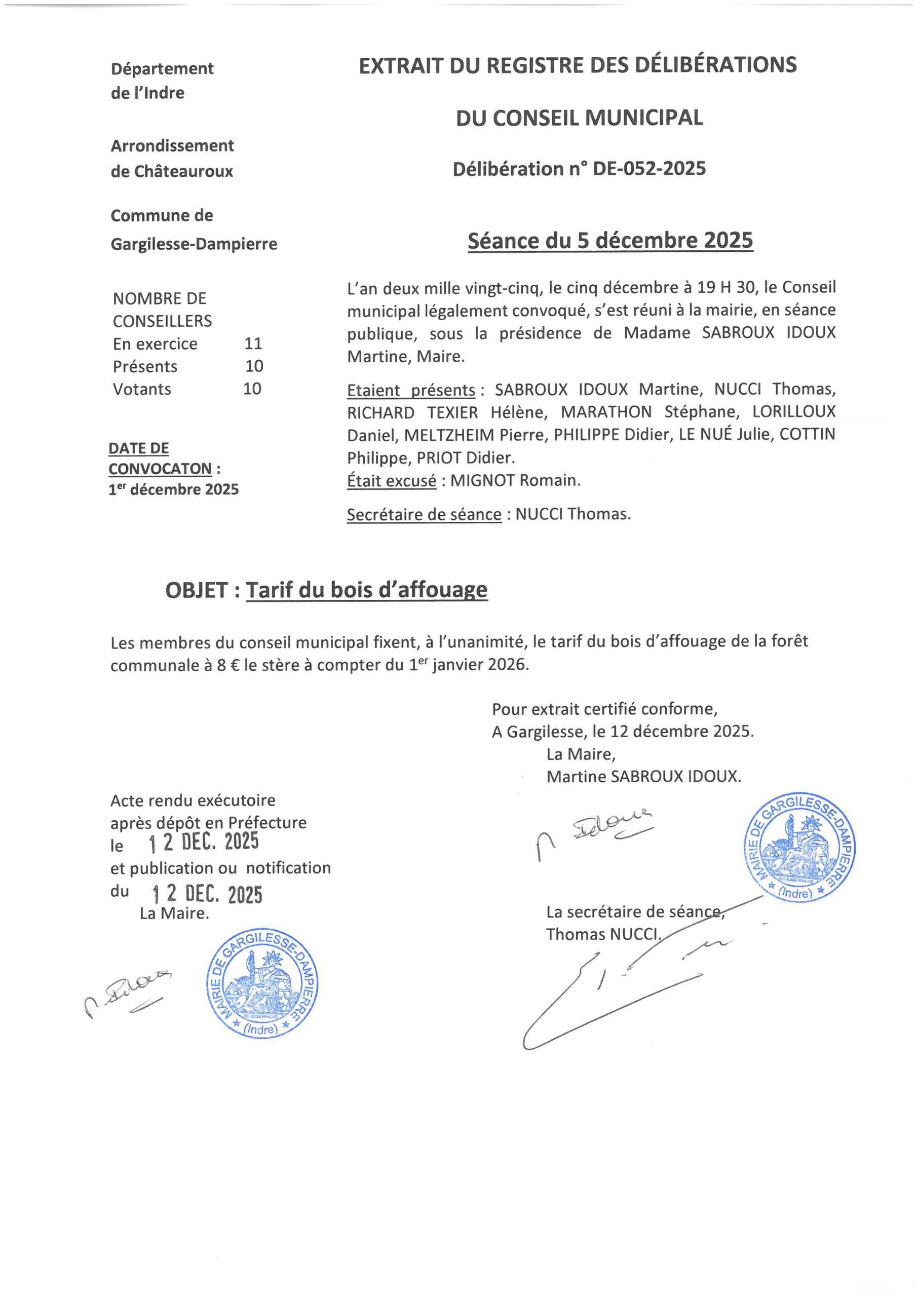 Délibérations du 5 décembre 2025