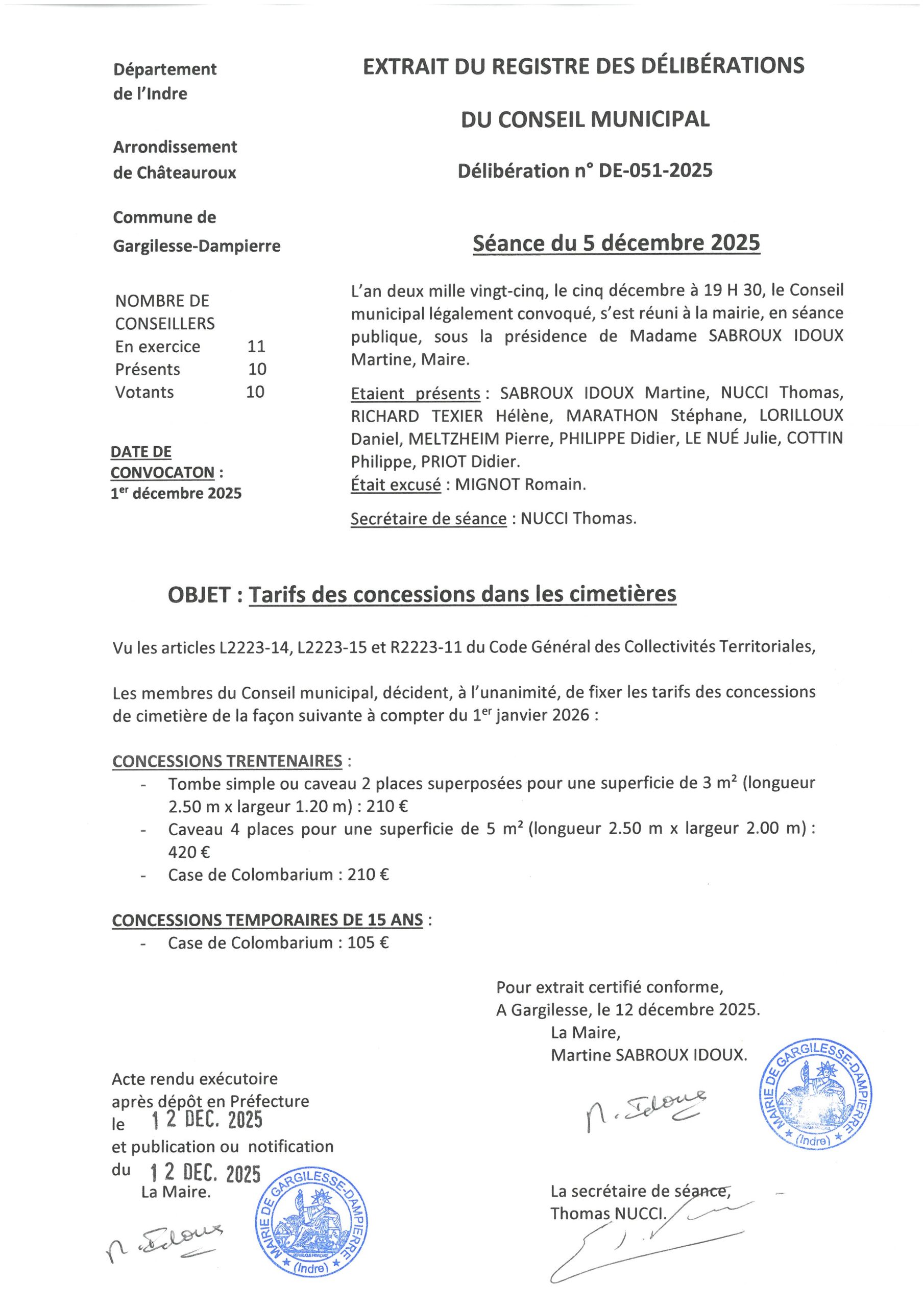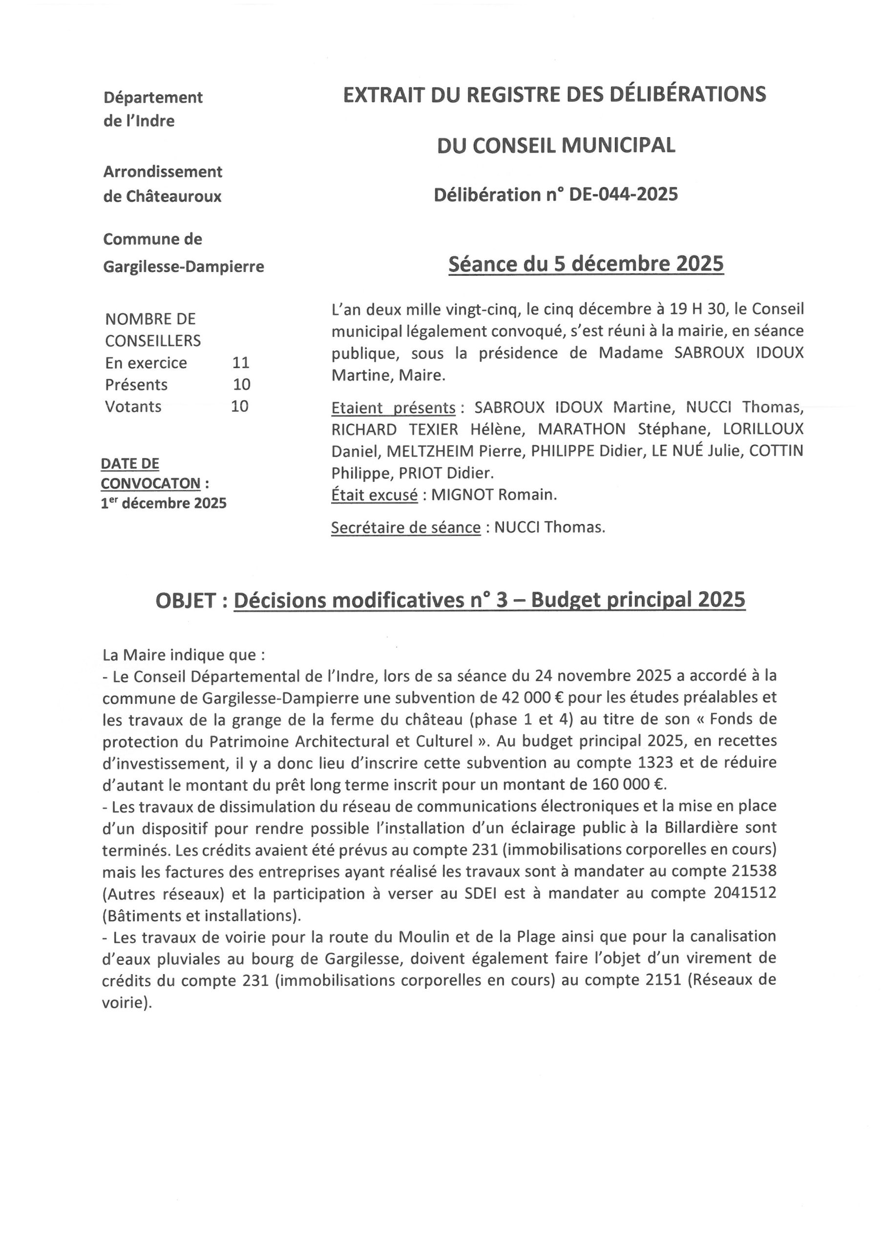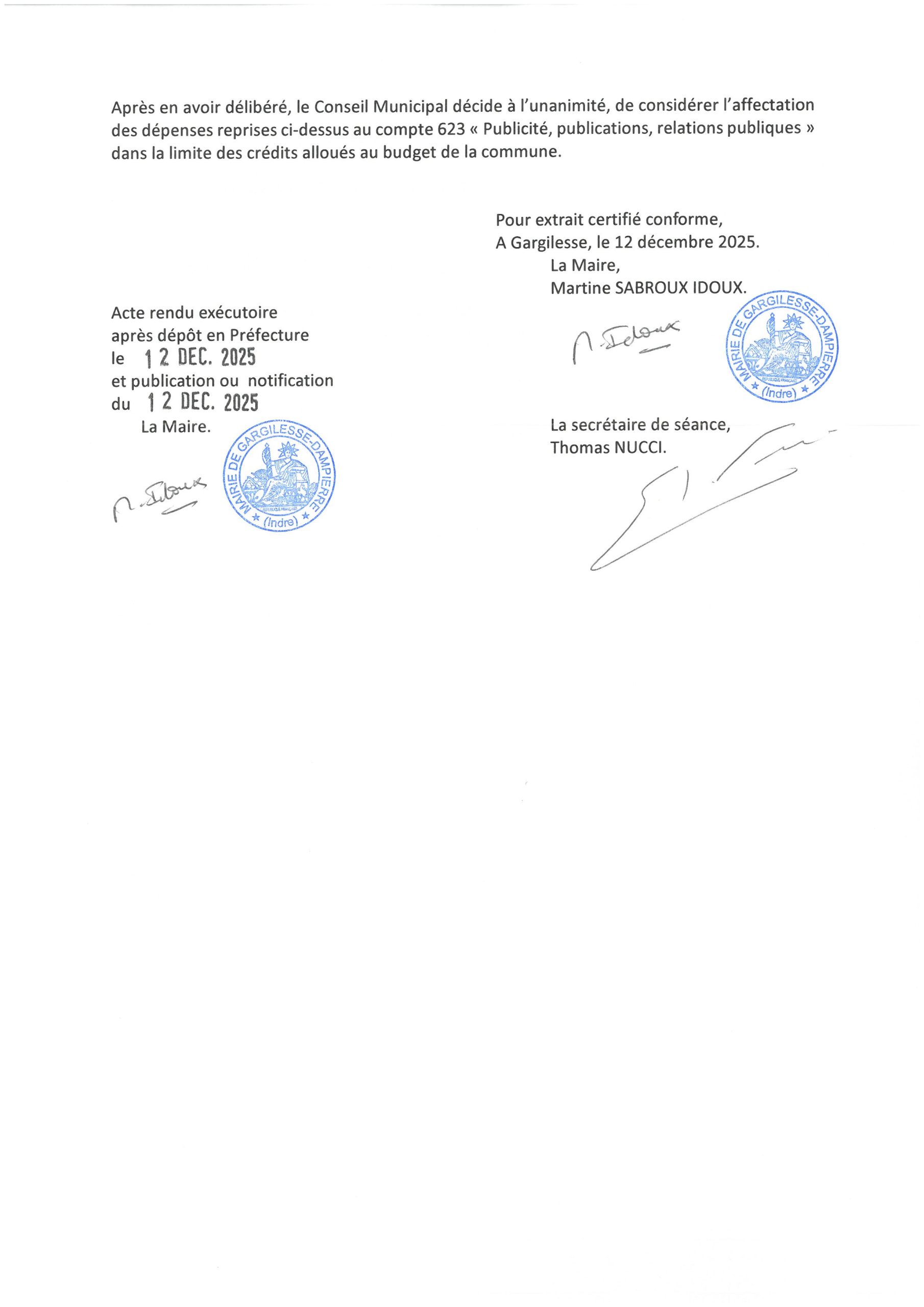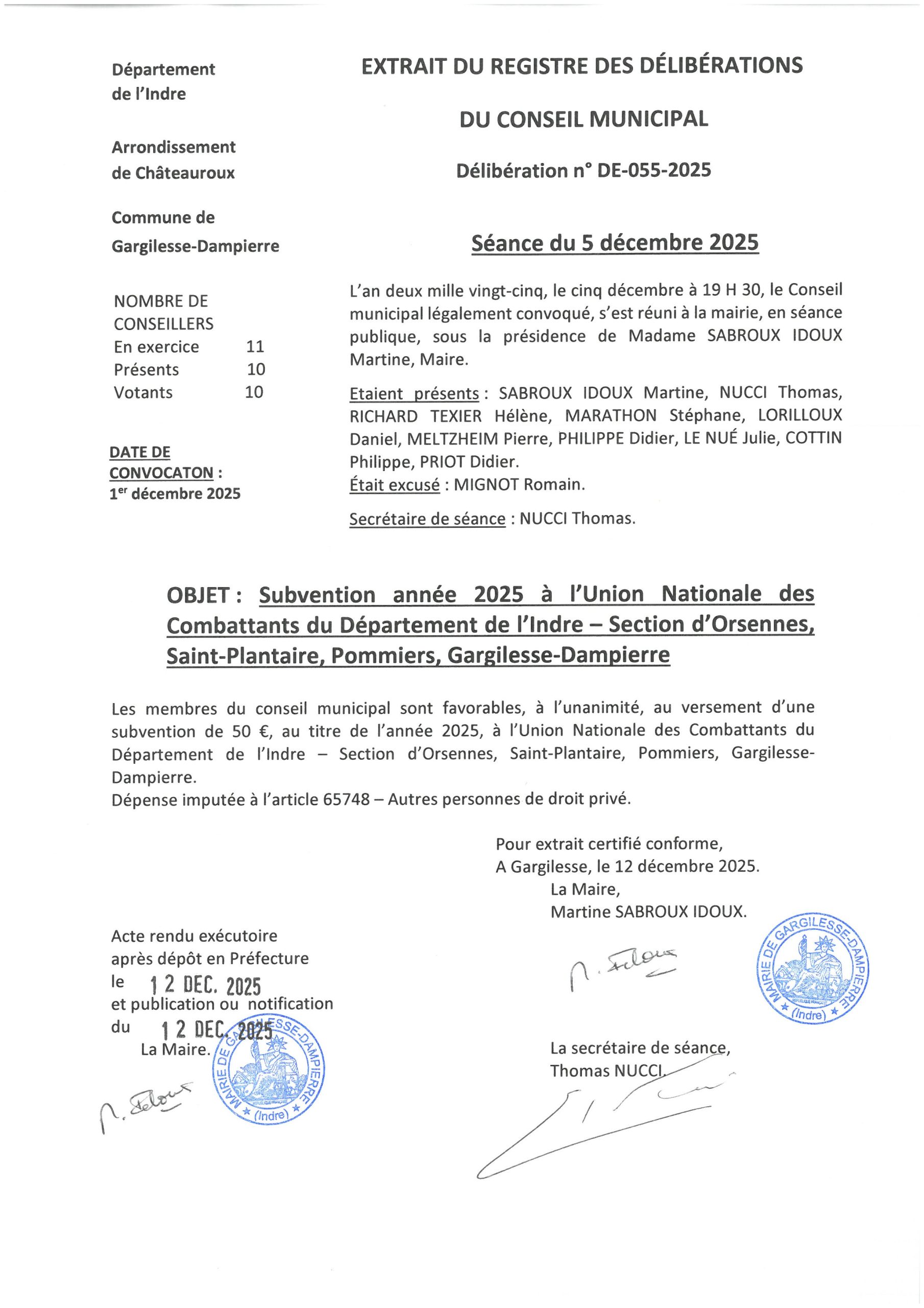 Délibérations du 5 décembre 2025